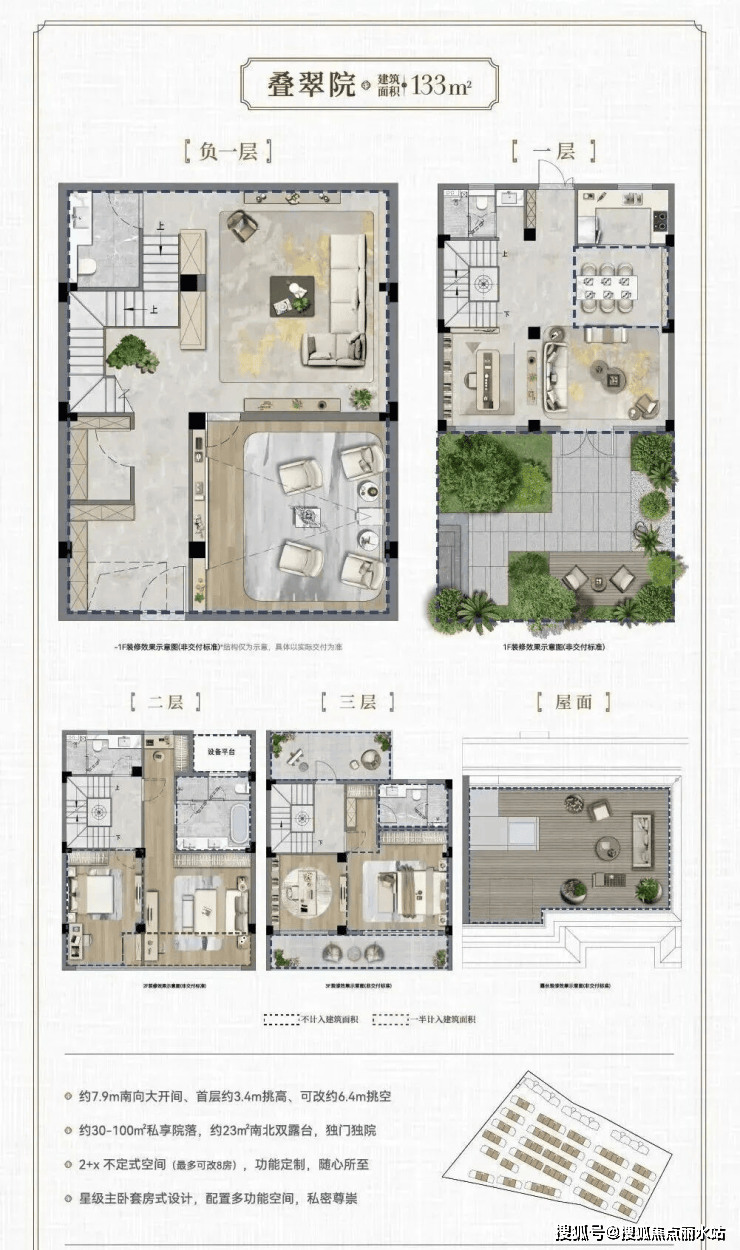 联排别墅:133-158㎡(四室三厅/四厅),总价1052万起