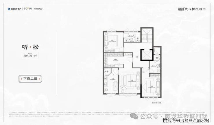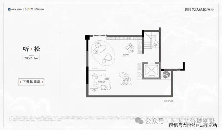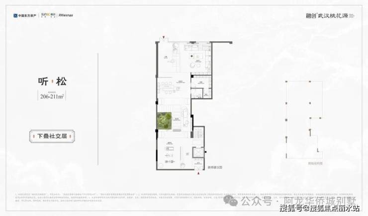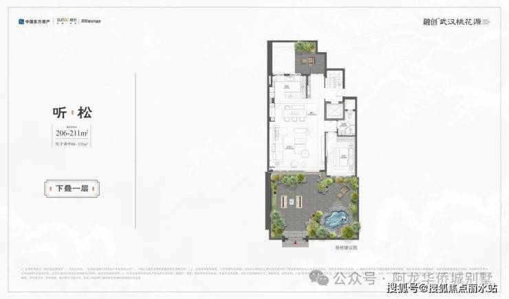 ◇听松|下叠|建面约206-211㎡· 一线临湖叠墅,窗前即是天心湖景· 奢阔私家庭院,面积约84–131㎡· 独特拓展层空间,兼顾孩子成长需求· 创新社交层场域,多元功能全家族满足
