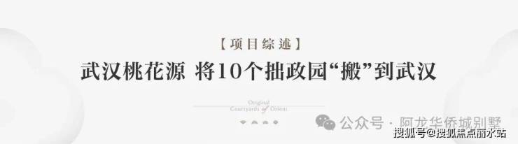 ◇传承桃花源 山水且留下武汉桃花源相承桃花源系高阶基因与至高造诣,秉承中国园林“虽由人作,宛若天开”的极致境界,携手断代背景下的非遗国匠香山帮,在延续中国古典建筑与苏式园林精粹基础上,交融磅礴楚风楚韵,为世界再现一座山水桃源胜境。