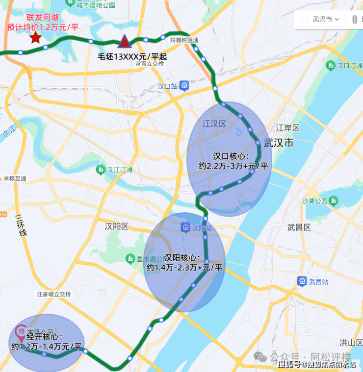 联发向湖位于地铁6号线沿线,在6号线往东往南串联起来的多个区域中,与该项目距离2站地铁的楼盘价格约13XXX元/平起,汉口核心楼盘更是高达2.2万-3万+元/平之间;汉阳核心楼盘价格约1.4万-2.3万+元/平,即使三环外经开部分项目都高达1.2万-1.4万元/平之间。