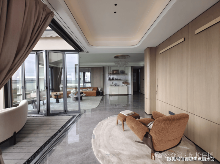 全程看完,最直观的印象就是曲线元素遍布,与项目临湖特质极其相配。但曲线设计工艺难度更大、对材料要求更高,但最终呈现效果更绝。 这也足见项目的产品诚意。