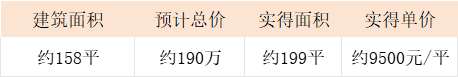如果按照约1.2万元/平的价格来计算,建面约158平的房源总价约190万,如果按照实得面积计算,实得单价仅约9500多元/平!