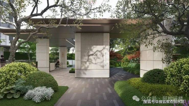 门庭高约7米,门口设计了聚宝盆雕塑、叠级水景,大门两侧的石材墙面与名贵树种相映衬,颜值、质感都首屈一指。