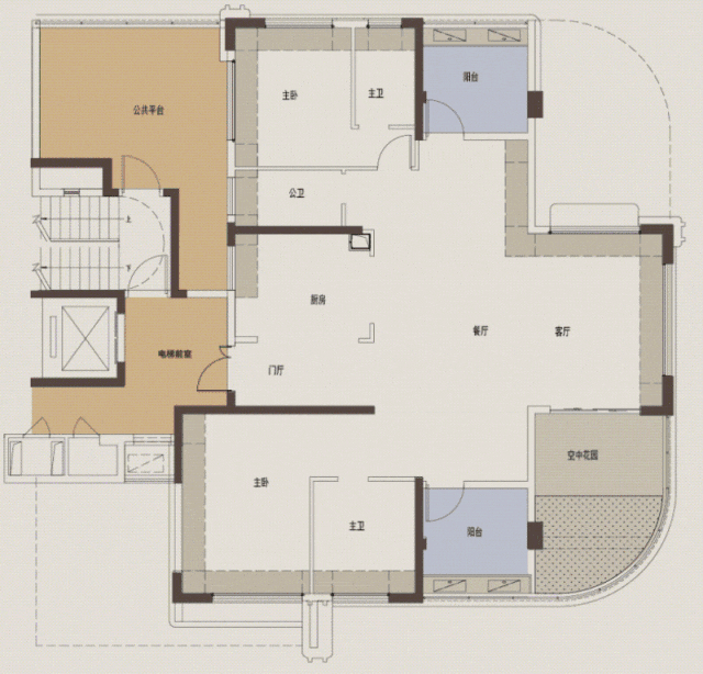 空中花园、独立电梯前室、公共平台等,优化空间足够多、足够大、足够实用、足够合理;