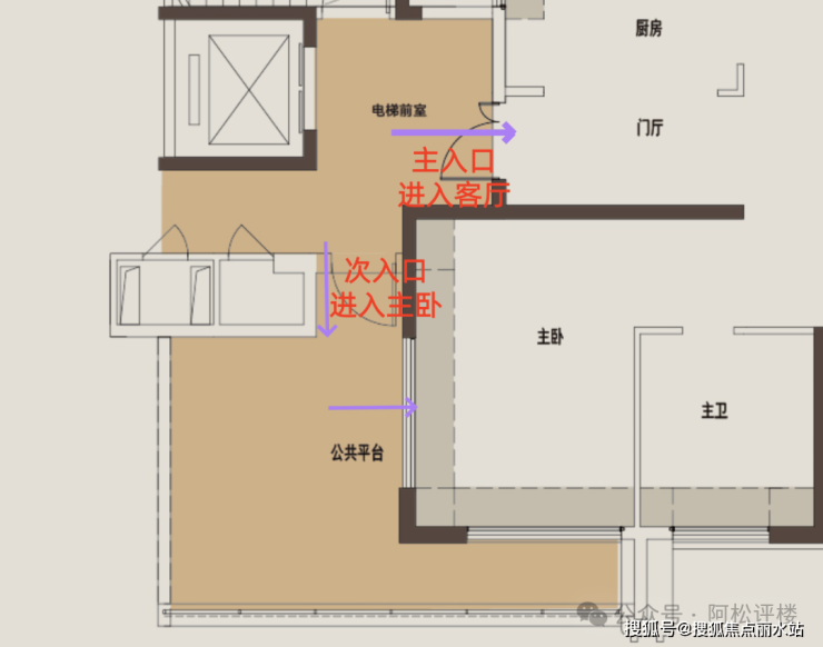 正大门承载了家里人进出和接待客人的功能,而次入口则成了主卧的专用入户通道,不仅仪式感拉满,主卧私密性更强。