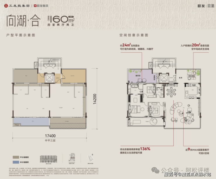 如高层产品包含约6.2米层高的空中花园和露台花园。在此之前,要想实现前庭后院,几乎都要在别墅才能做到,如今却在联发向湖建面约158平的高层四代宅实现了。