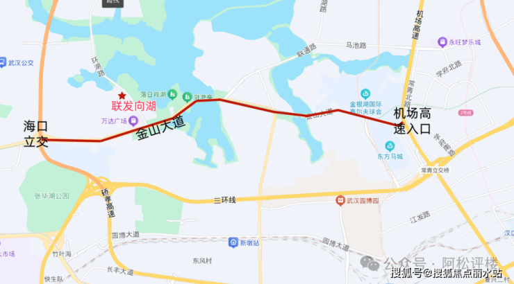 联发向湖东侧一路之隔就是金银湖及金银湖湿地公园,是整个区域乃至全武汉都极为珍贵的一线临湖四代住宅。
