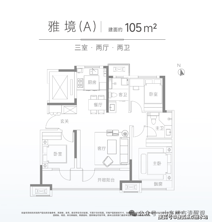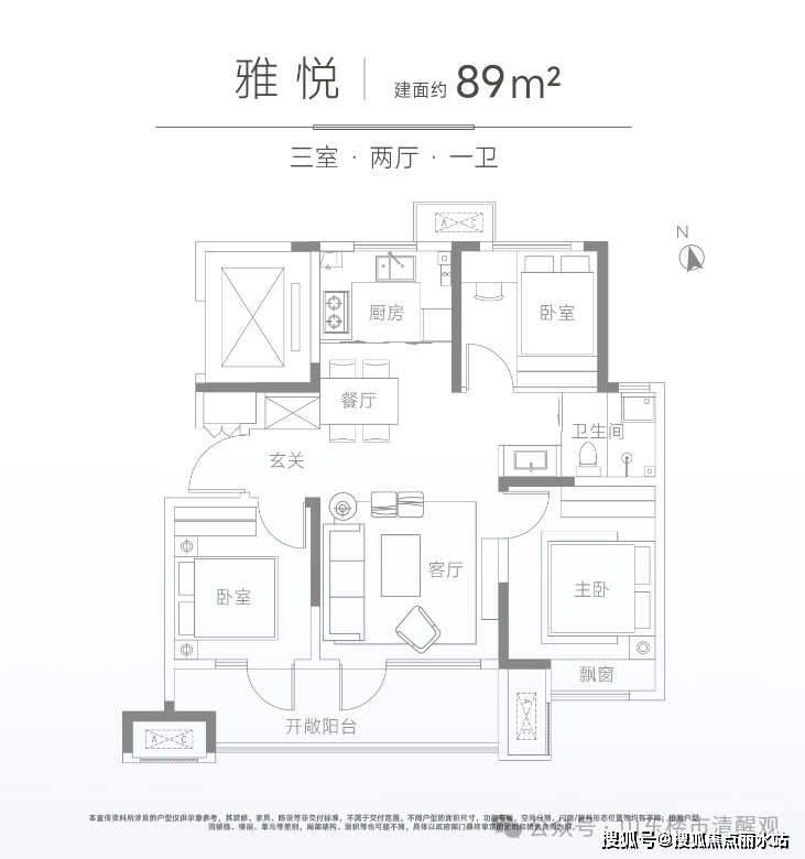 北岸雅望的产品面积为89、105、119、143㎡四种户型。结合整个产品系的定位,精研“小面积轻豪宅”,通过双开间阔景阳台放大空间视觉,三面宽起步、部分产品为四面宽设计,把景观面做到最大化。
