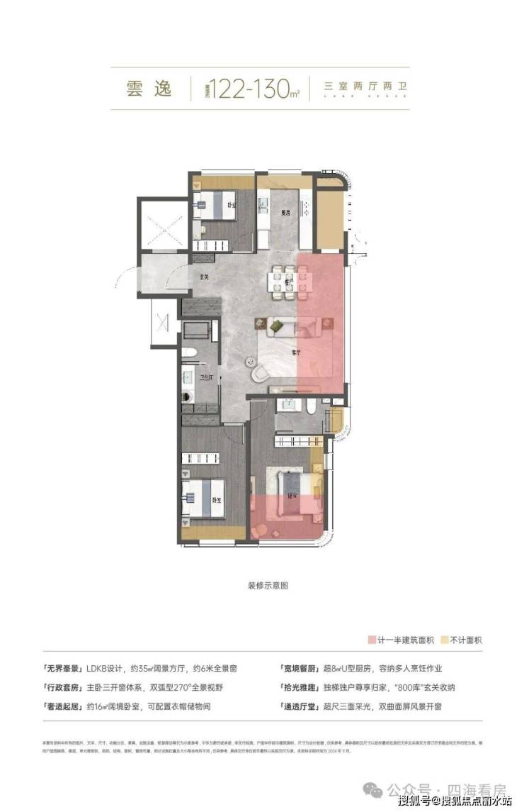 🔹准四代户型设计,实现约93%-103%超高得房率,营造“270度全景舱”、“双主卧奢阔套房”、“LDKB+X无界空间”、“三开间阔绰尺度”等,呈献湖滨美学作品。