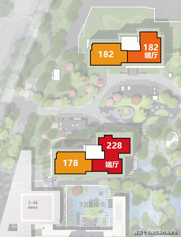 五,下图所示182户型与178户型,实质上为同一户型,因为东户面积有变,故此户型面积会产生变动。