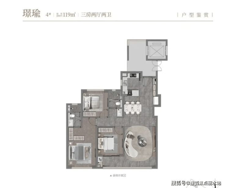 项目优化后得房率能达到100%,所有户型都有独立电梯前室,且私密性都很好。预计12月份首开3、4号楼,户型面积119平、139平、153平、165平。