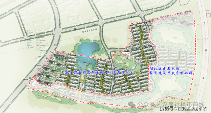 首先,整个光谷融创地块分为两个公司开发,大家看图,我简称为凯喜雅地块和迁建王家墩地块,项目先开发的为西区靠光谷一路的凯喜雅地块。