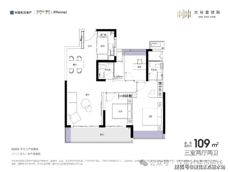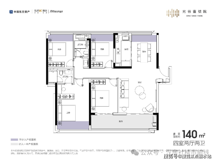 在产品上,主要还是之前的两个户型,中间户建面约109㎡三房两万,以及建面约140平四房两卫,合同面积大概是105平和136平,两个户型其实都算比较优秀的三代宅,除了赠送面积没那么夸张,格局与很多准四代都比较接近,140拿掉承重墙一样可以做大横厅格局,不过这个是精装修交付,所以改造需要成本。