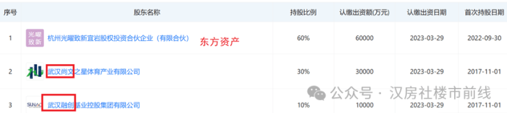 2022年12月21日,东方资产与融创中国就武汉桃花源项目达成融资合作,预计注入资产33亿,最新的股东占比为,东方资产60%,尚文地产30%,融创10%