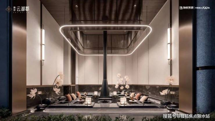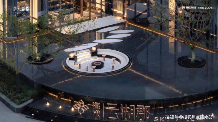 海成云湖郡通过弧形线条的几何美学与精工细作,香槟金、月影白的错落搭配,0.31的窗地比,淡化棱角,提升采光面,使整个建筑看起来柔和温润,更具精致和奢华质感,很有艺术感和辨识度。