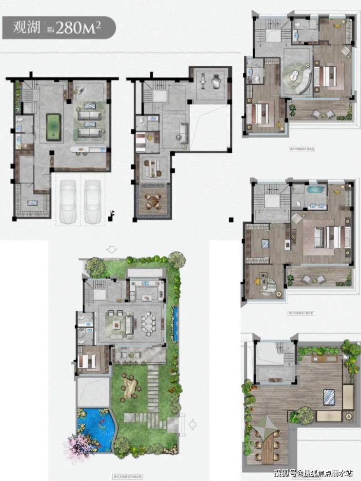 湖光三面庭:270°景观环绕庭院,气派空间放眼皆景,奢从自然来。