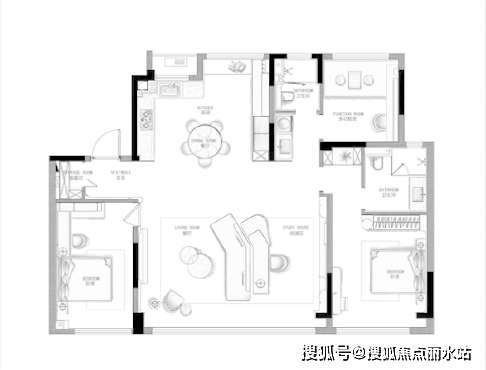 约139㎡户型:主打“弹性生长”概念,创新的“3+1”房设计,使空间能灵活应对从二人世界、三代同堂到居家办公等不同人生阶段的转变。结合五大升级收纳系统、博世等国际一线家装品牌及全屋智能体系,打造了一个能够主动适应、支持家庭结构变化的“可生长之家”。