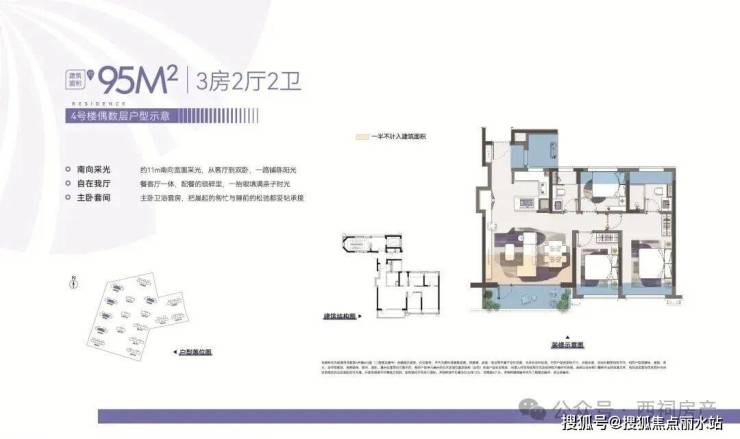 此外,建面约95、105㎡三房也备受新青年青睐。