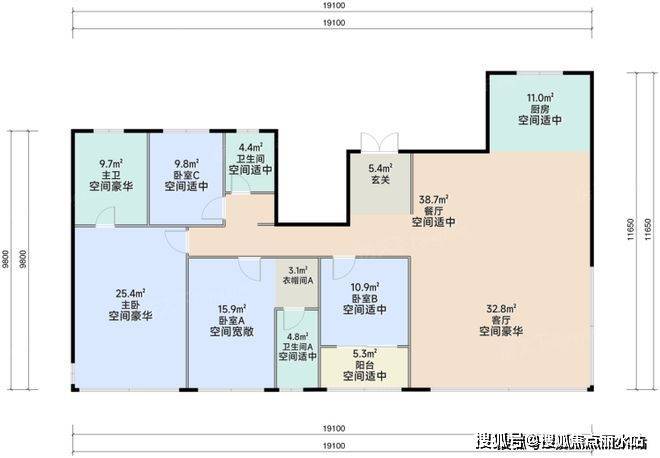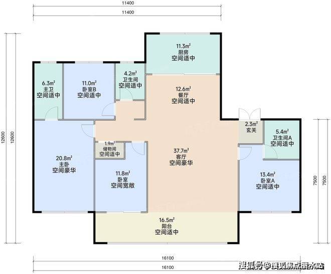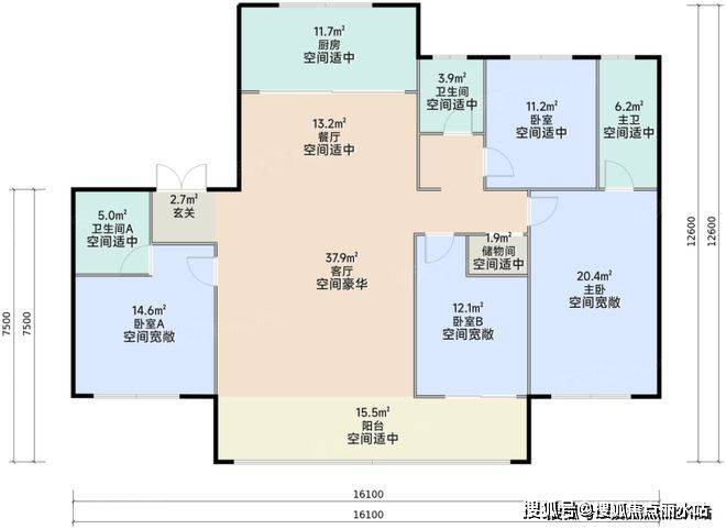 建面约132平三室两厅两卫:此户型位于A1号楼东侧,两开间朝南,餐客厅横厅设计,270°采光,主卧是南向大套房,属于三面采光的通透边套户型。