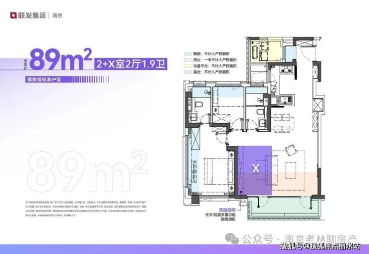 89户型2+X室2厅1.9卫