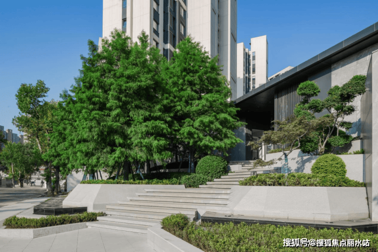 其次和新元素言欢:立面设计采用具有工业风特征的现代精工的立面风格,精致的石材、仿石材的斜面造型与干净的玻璃栏板及内嵌金属凹槽的墙面共同勾勒精致与细腻的现代精工风格。