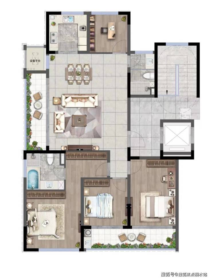 · 全人车分流,保证业主居住舒适度与整体景观营造,确保地面行人的绝对安全;金刚砂地坪,人性化的导向标识,享受舒适的归家体验;