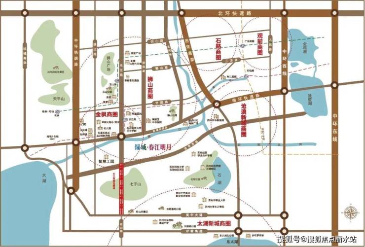 公园——拥揽石湖景区、玉山公园、狮山广场(在建)等丰富自然人文景观,咫尺胥江畔,打造3公里滨水景观生活,沿江晨跑、漫步,鲜氧每一天。