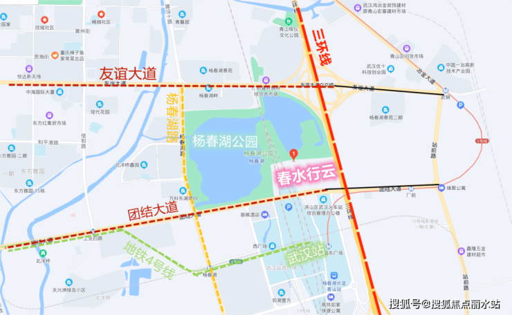 如果仔细观察项目的位置就能发现,楚天都市春水行云位于杨春湖公园内,南侧便是武汉站。