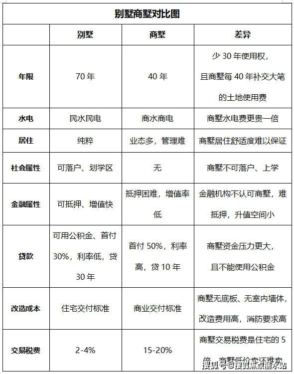 另外还有业态多、管理难、抵押困难、增值率低等问题,小编放一张表格方便大家了解: