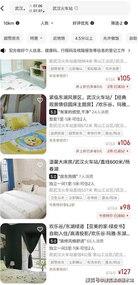 小编在美团上查询到武汉火车站旁的公寓、民宿产品,在常规工作日下每天的租金在月100元。即使每天都有人入住,一间房一个月的流水也只能达到约3000元。