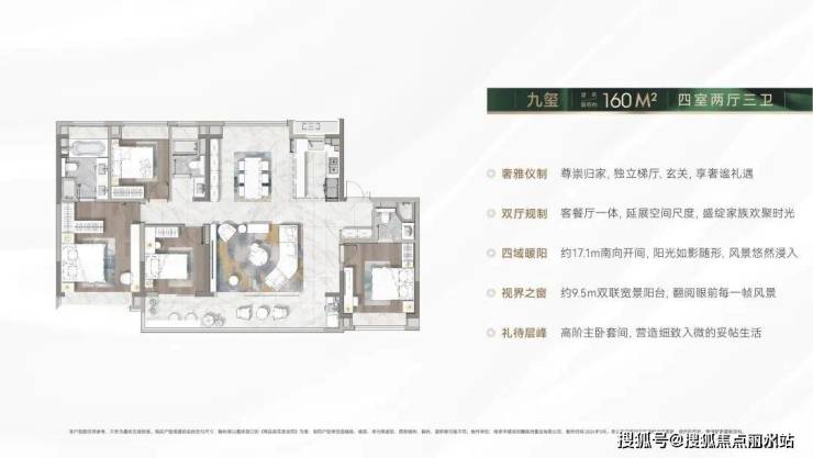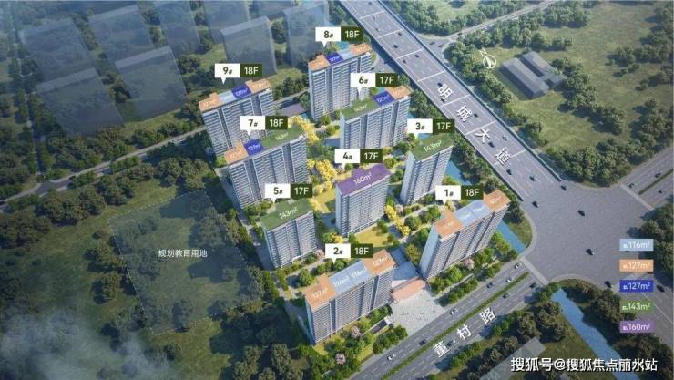 项目规划9栋17-18F小高层,九境园林景观规划,打造建筑面积约116-160m²纯板式大宅,没有连廊,类一梯一户,外立面采用铝板+大面积玻璃打造简奢造型南北双立面,匠著百家湖纯粹改善。