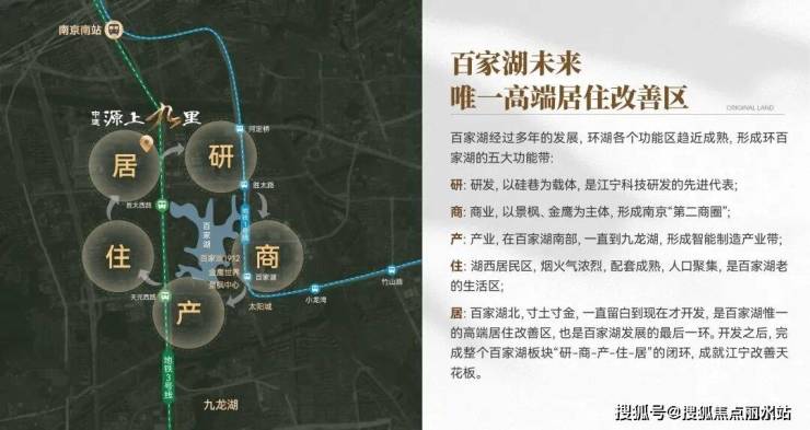 商业方面:南京第二大商圈:作为江宁人的“宇宙中心”,百家湖聚集景枫KINGMO、百家湖1912、江宁金鹰、21世纪太阳城等共约80万㎡的商业体量,日流量超200万人次。全城第二大商圈。