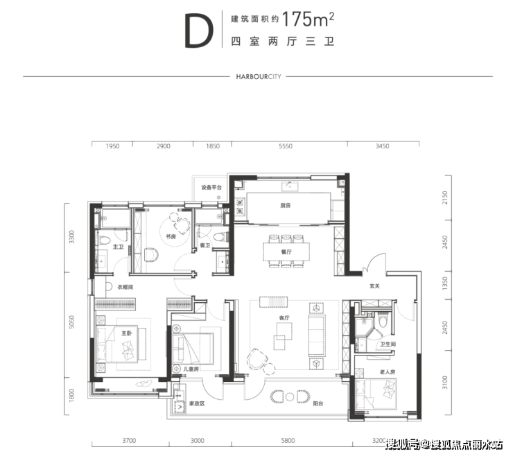 另一个打破房师傅预期的,是楼王的户型!7号楼王牌户型——建面约175平的套四三卫。