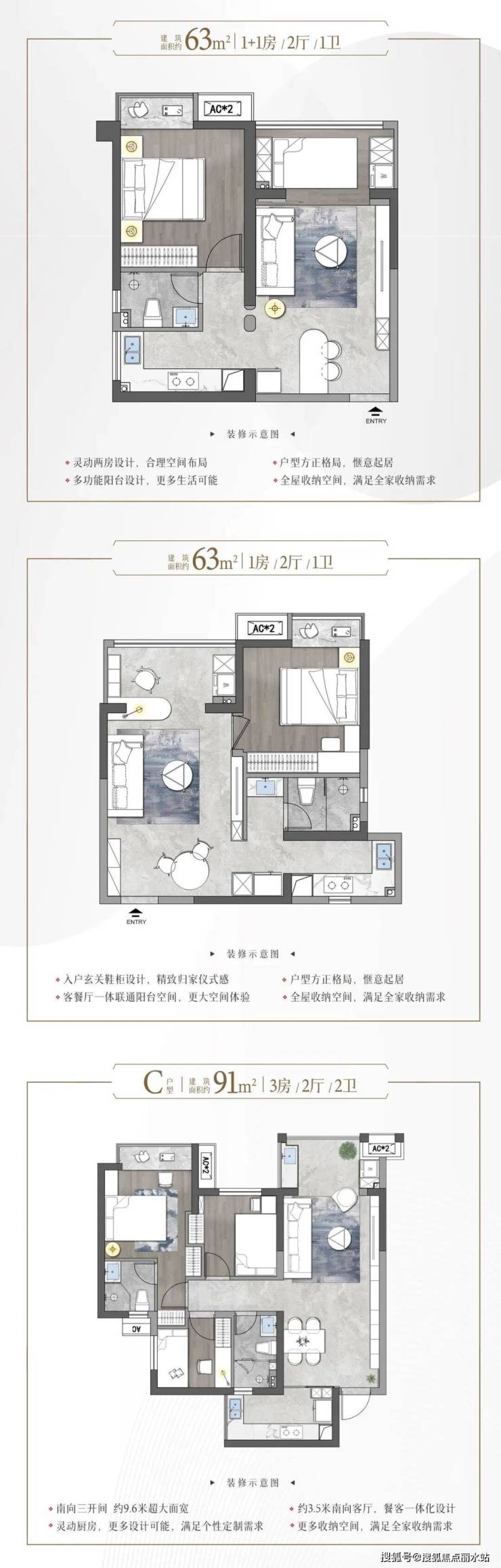 91㎡(3房2厅2卫)首付8万左右,月供2100左右