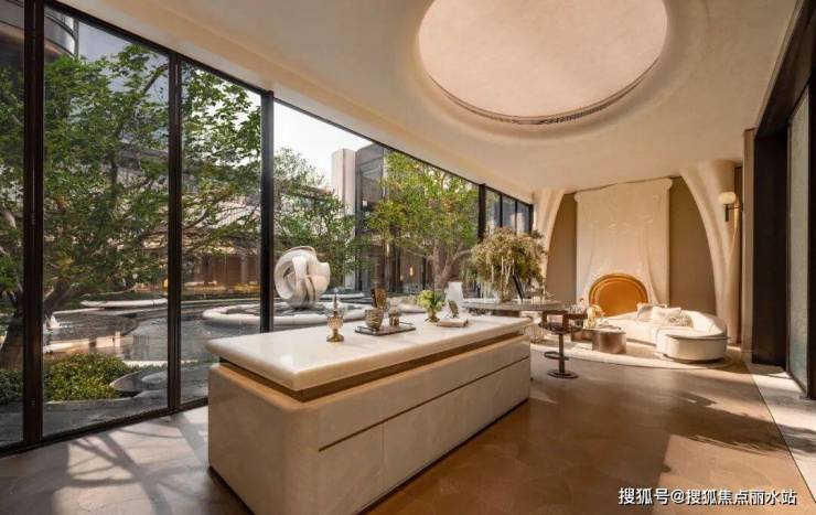 会所空间围绕下沉庭院四周布置各种功能,形成室内室外的景观渗透关系,这是目前温州豪宅界的常用套路,而天曜序显然在“细节的精美环节”花了更多的心思: