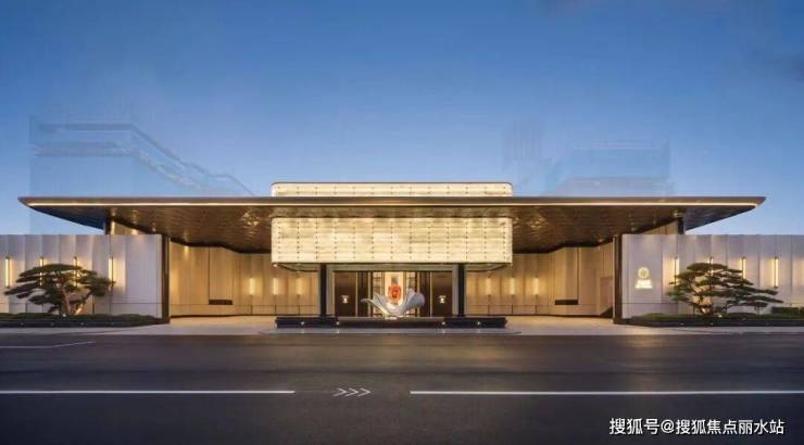 超大跨度的轻盈圆润飘顶,最干净纯粹的几何体块穿插,镶嵌着温润晶莹的玉石华盖。令人称奇的是,华盖下方镜面水系微澜泛起,映照着玉石摇曳着波光,不禁让人联想起白居易的那句“翠华摇摇行复止”---这华盖,“攀附”的可是唐明皇杨贵妃出入的尊贵礼序?