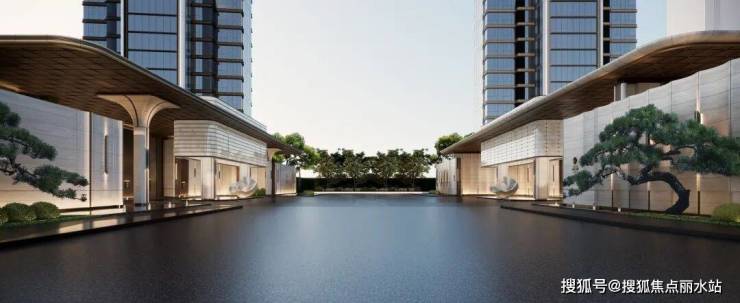 门头两侧,黑松孤植入画。不得不说一下天曜序这棵非常罕见的镇宅黑松,它完全没有其它楼盘常见的那种“矫揉造作的人工痕迹”,而是天然的飘逸、俊秀、兼具苍古之姿,冠幅舒展层次丰富,颇具山水画卷的意境之美: