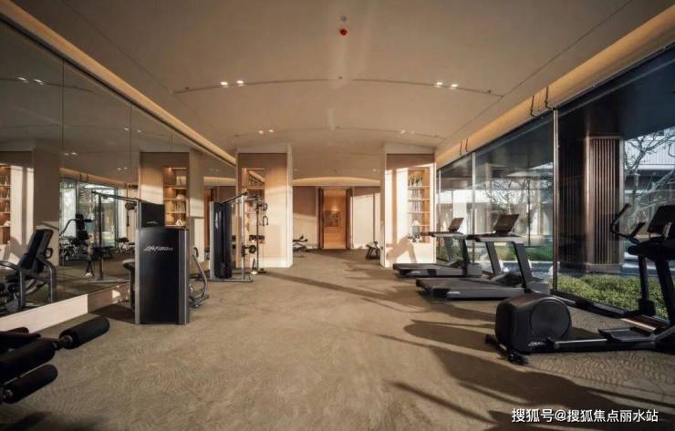 健身房配备的是进口品牌力健器械,这可是被誉为“健身界保时捷”的存在。庭院景观通过全景落地玻璃窗而入,再由另一侧玻璃反射,360°绿意盎然,跑步更有劲头。