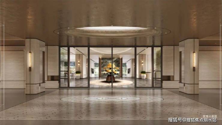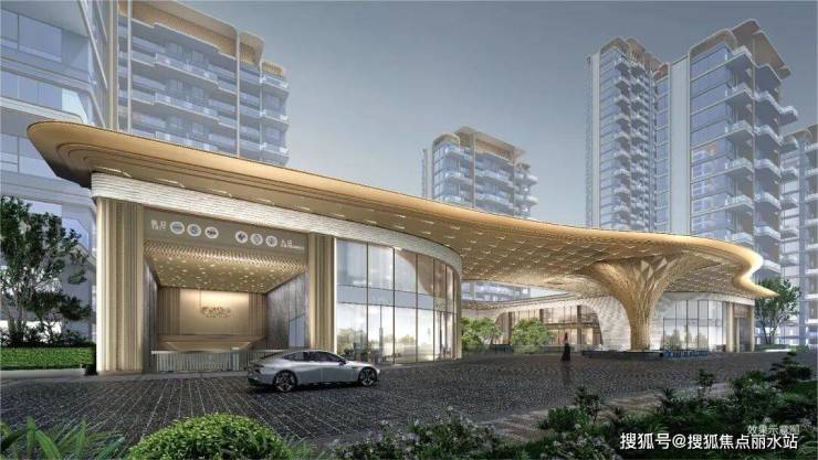 近110米城市旗舰门厅,约7.8米奢阔高度,专属环岛落客区,构建一体化城市界面,给予无限的尊崇感和仪式感。