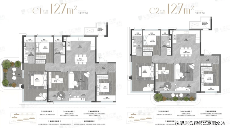 以这次的建面约127㎡户型为例,一梯一户设计,独立门厅,私密拉满。