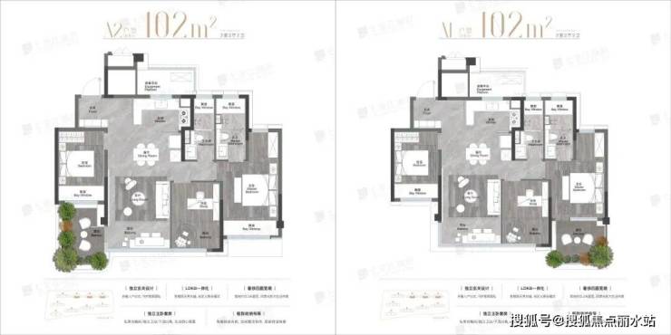 小户型,也能做到横厅大空间。比如建筑面积约102㎡三房两厅两卫设计,做到四开间朝南,露台、独立玄关,极致收纳,南向拥有约12.2米面宽,更有独立主卧套房设计。