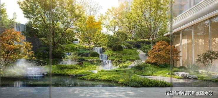 尤其是半岛的下沉庭院,是真正可以步入式的!没有了垂直下沉的隔离感,通过坡度设计,消除了视觉屏障,形成了更自由的台地错落的自然感。并通过多叠水系,阶梯步道,让下沉空间与中庭景观无界消融。