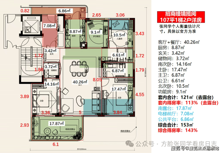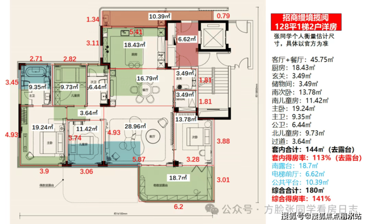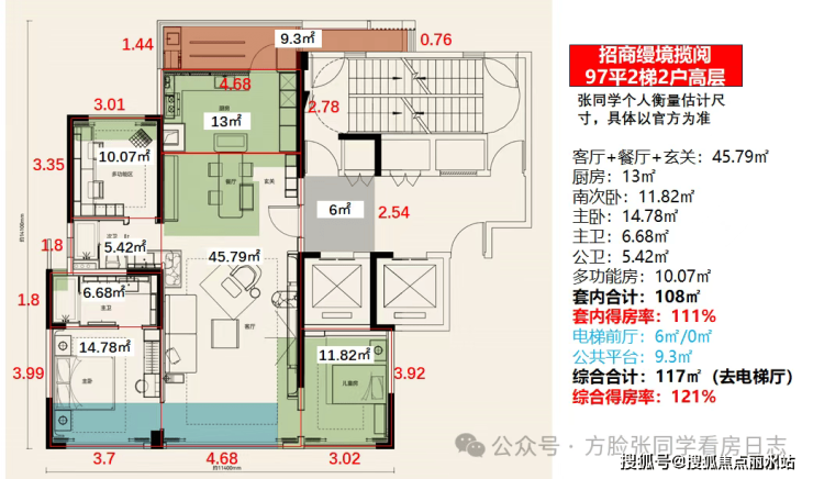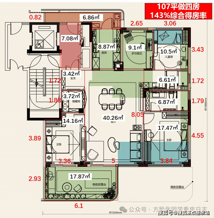 太狠了,建面约107平做四房!厨房、餐厅、儿童房全送!优化后得房率直接干到130%+!