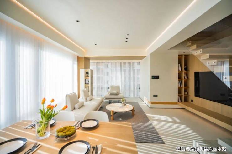 以建面约125方实景样板房为例,创新跃层格局,针对外围奢绰的景观资源,不惜重金配置了大面积落地玻璃,让上下两层都拥有270度的采光和景观视野。