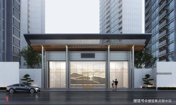 北侧入口同频主入口设计,打造迎宾水系+华贵门头,勾勒尊致礼序感,彰显大家气度。