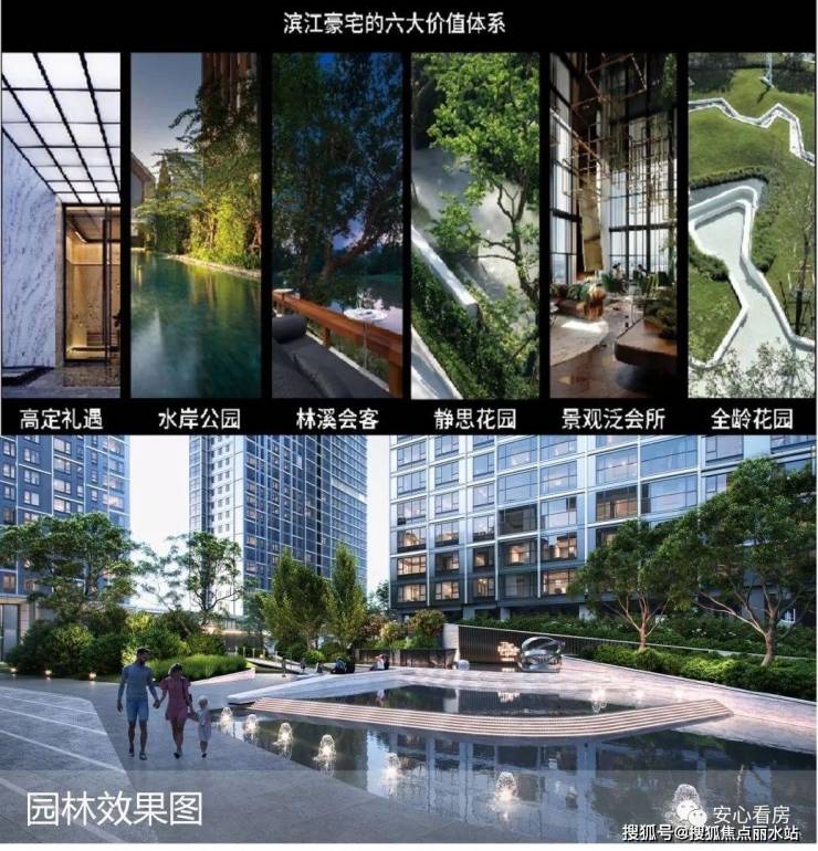 以武汉“江城”文脉为基底,集合特有地域文化脉络,提取长江、四美塘元素,将其引水入园造境,串联板块,将活动空间向社区聚拢,形成一环一轴五大灵动空间六大社区场景:高定礼遇、水岸公园、林溪会客、全龄花园、静思花园、景观泛会所。