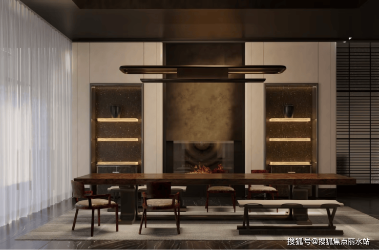 不仅仅是表面的惊艳,而是所有空间里都渗透了浓郁的艺术美感。比如这个阅读书吧空间,借由自然光线和灯带的铺陈,幻化出静谧的场景,业主可以静静品享文字世界。再比如将会规划健身空间、儿童活动空间的地下会所部分,未来您在健身房运动时,肉眼收到的也是完全不一样的艺术气场。