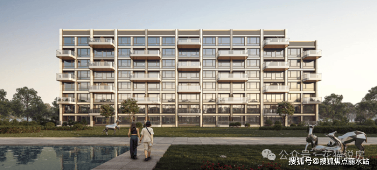 从效果图来看,项目颜值还是比较高的,楼栋前还有镜面水景、大片绿地↓