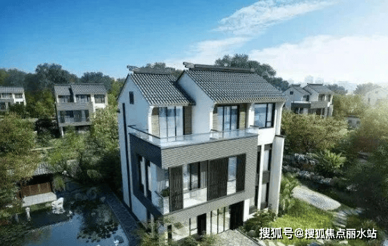 采用新中式建筑风格,融合现代简约与传统元素,屋顶设计独特,兼具美观与实用功能,庭院、花园等户外空间设计精致,与自然环境相得益彰。