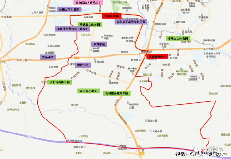 九曲片区有泉海学校、文景小学、泉欣小学等配套学校,有济南大学西校区(南院)、山东医学高等专科学校等文教单位,距离济南大学主校区一路之隔。片区内有中海环宇城等商业配套,距离领秀城贵和购物中心一路之隔,距离省立医院(南院区)3公里以内。片区内有马武寨山体公园、小龟山山体公园、大北山山体公园、万科望岳康体公园及双山顶-万岭山等公园绿地配套。